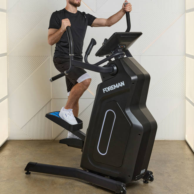 Классический степпер имитирует подъем по лестнице. Две педали двигаются строго вверх-вниз — вы наступаете на одну, вторая поднимается. Никаких поворотов, смещений, дополнительных осей. Движение простое, понятное и повторяемое.