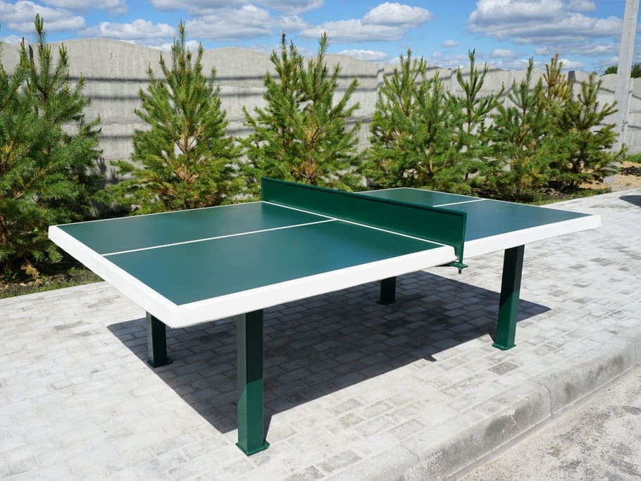 Уличный стол — отдельная история. Меламиновая или HPL-столешница толщиной около 6 мм ведёт себя иначе, чем 25-миллиметровый ЛДСП: отскок чуть мягче и менее быстрый. Для семейной игры на даче это абсолютно некритично. Но если человек серьёзно тренируется и хочет перенести навыки с клубного стола на дачный — разницу он почувствует.