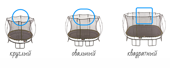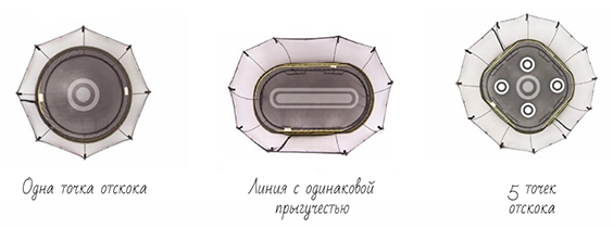 Это значит, что при прыжках на квадратном и овальном батутах прыгуна не будет отбрасывать в сторону или в центр, он будет подлетать ровно по центру, а не улетать в сетку. В круглом батуте одна точка отскока, посередине.