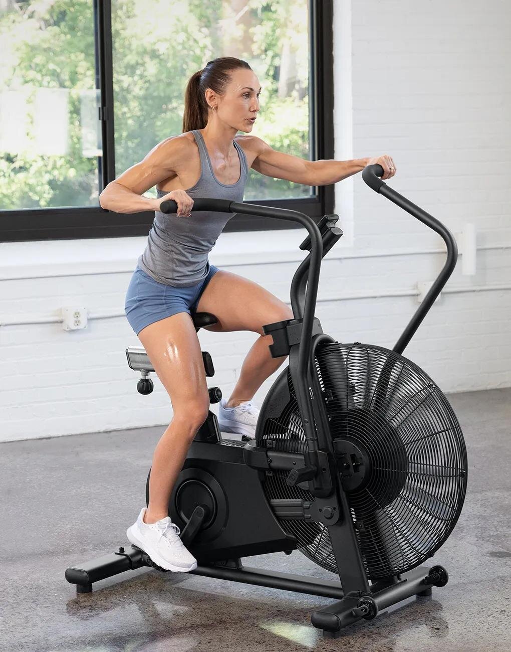 Удобный держатель бутылки для воды позволяет всегда иметь воду под рукой, ветровое стекло блокирует избыточный поток воздуха при интенсивном использовании, а встроенные транспортные колеса позволяют легко перемещать Air Bike по мере необходимости.