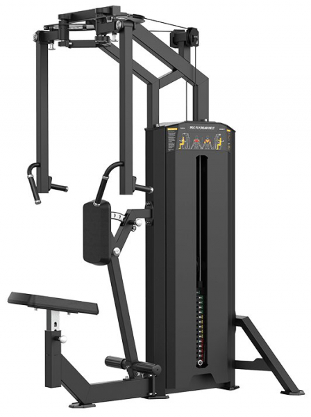 Профессиональный грузоблочный тренажер пек-флай/задняя дельта предназначен для коммерческого использования. Тренажер отличается современным дизайном и высокой эргономичностью конструкции. Надежная стальная рама, изготовленная из усиленного профиля, имеет прочное покрытие, которое наносится при высоких температурах способом порошкового напыления. Рабочие рычаги имеют независимую конструкцию, что позволяет сбалансированно прорабатывать мышцы с каждой стороны тела. Встроенное вспомогательное устройство позволяет регулировать стартовую нагрузку, что обеспечивает возможность эффективно тренироваться пользователям с разным уровнем физической подготовки. Комфорт и эффективность тренировок пользователям разного роста и комплекции обеспечивается за счет многопозиционной регулировки сидения. Сиденье и большая опорная подушка для спины обита высококачественной искусственной кожей, устойчивой к истиранию, а в качестве набивки используется плотный наполнитель, не подверженный усадке и сжатию.