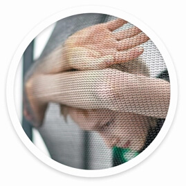 Мы остановили свой выбор на применении PE-нити с частым рисунком плетения. Бесшовное полотно без узелков, делает сетку подвижной и эластичной. При падении в нее вы почувствуете, как она обхватывает пользователя и гасит инерцию.