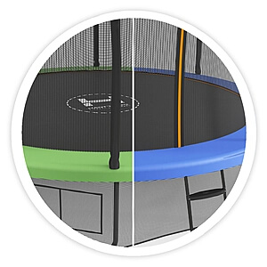 Защитный мат скрывает любые зазоры между рамой и пружинами. Протестировав агрессивное воздействие ультрафиолета, мы с уверенностью говорим, что мат выдержит испытание временем. Версия DOUBLE — это возможность использовать две стороны мата! Переверните мат и батут сегодня будет синим, а завтра может стать зеленым.
