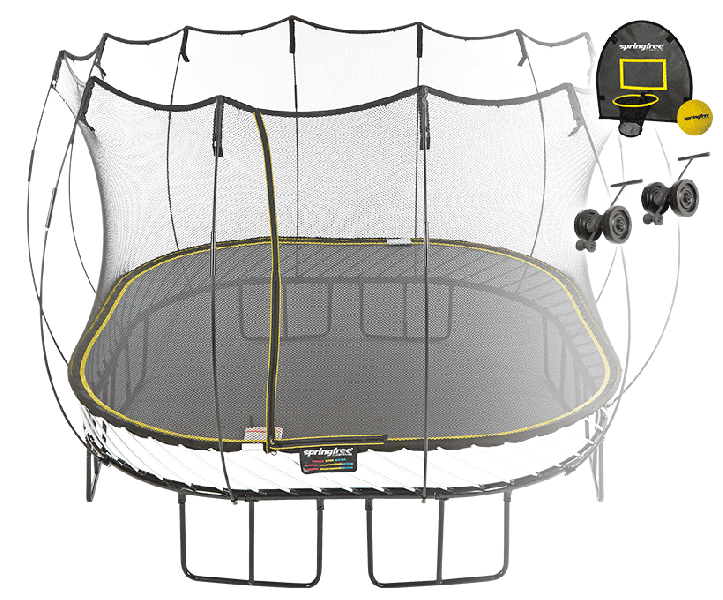 Батут квадратный SPRINGFREE S113 HW с корзиной для мяча и колесиками