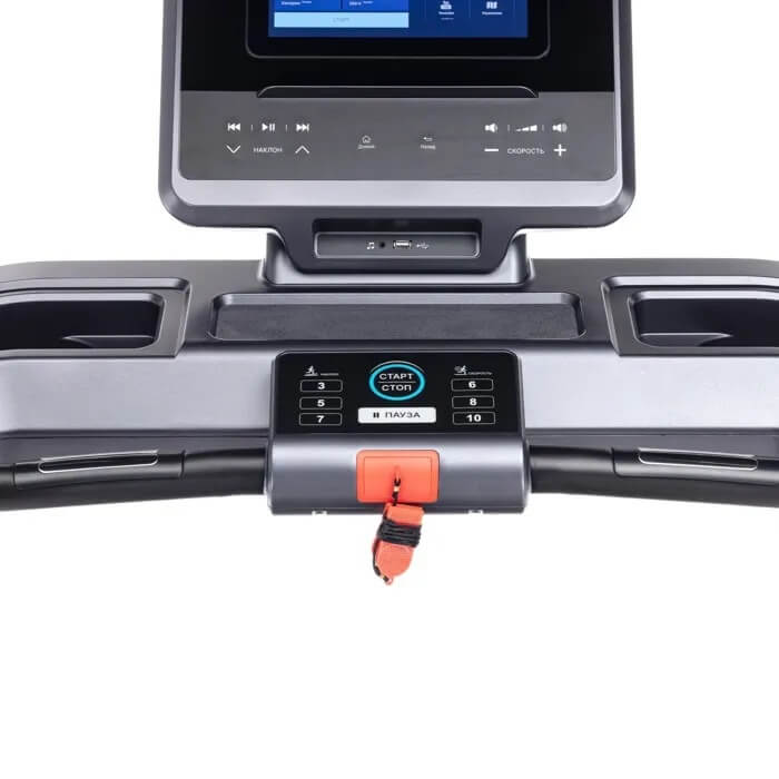 Для точного контроля вашего состояния дорожка оснащена сенсорными датчиками на поручнях для измерения пульса и поддерживает беспроводное подключение к кардиодатчикам. Интеграция с мобильными приложениями через Bluetooth позволяет использовать современные технологии для отслеживания и анализа ваших результатов, делая процесс максимально персонализированным.
