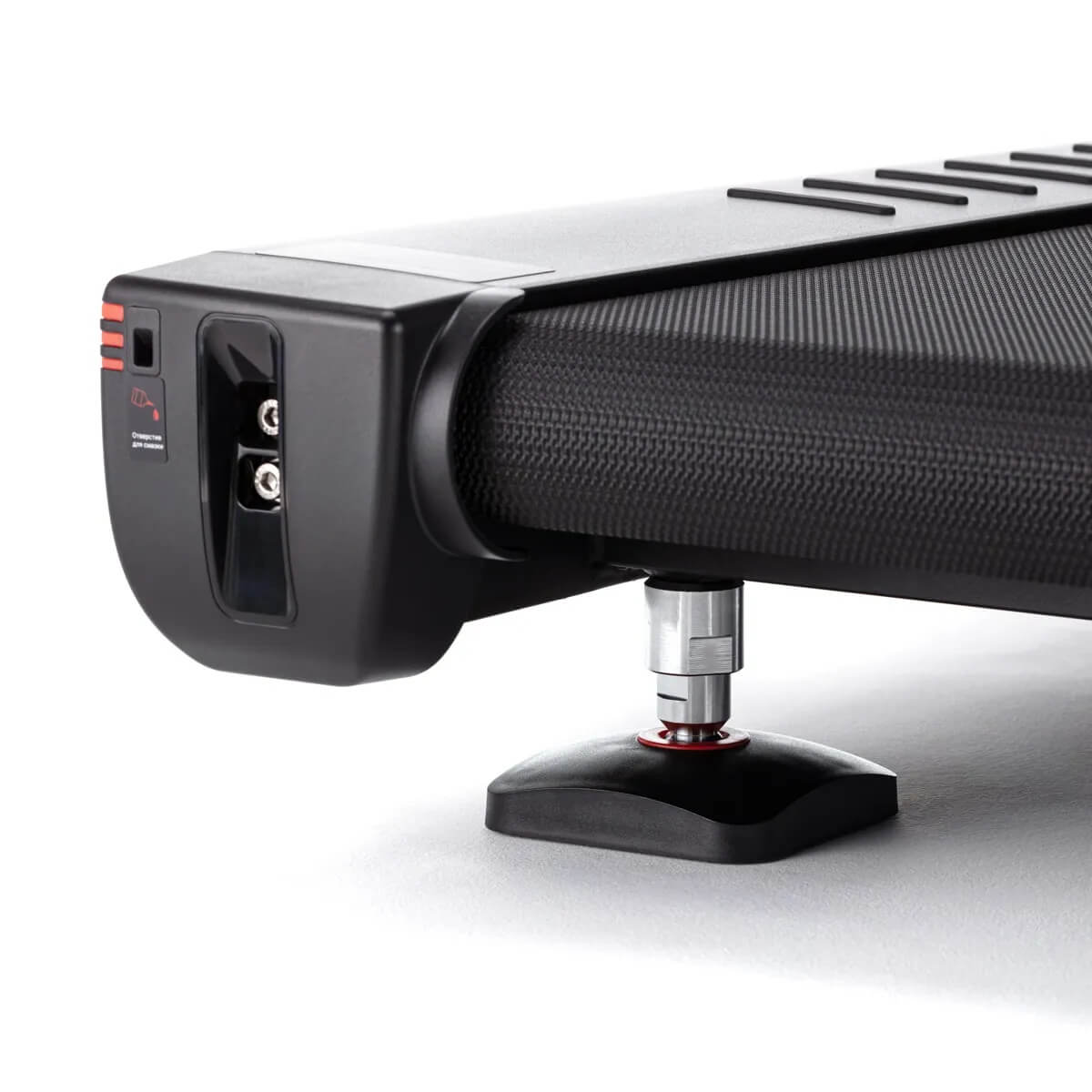 Лёгкий доступ к моторному отсеку позволяет выполнять обслуживание дорожки самостоятельно. Для этого достаточно использовать небольшой металлический элемент или монетку, чтобы открыть отсек. Внутри предусмотрены силиконовая смазка и щетка для обслуживания, что делает процесс ухода за дорожкой простым и удобным.