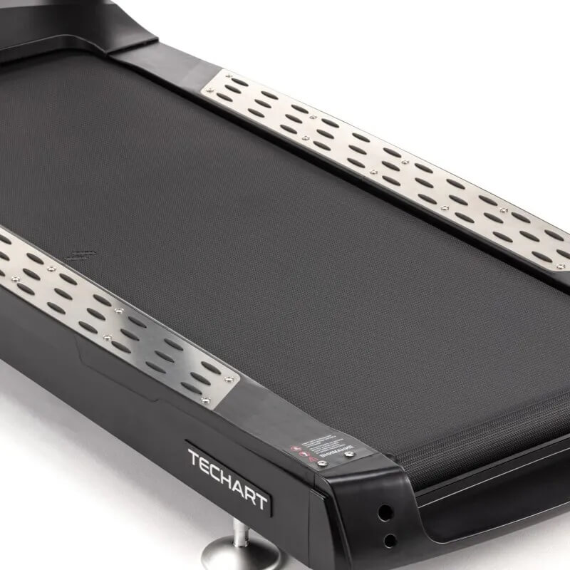 Techart выполнена в элегантной палитре черного и серого цветов, с добавлением металлических элементов, которые придают модели уникальный стиль и солидность. Лаконичные и выверенные формы дорожки подчеркивают её современный характер, а металлические вставки, гармонично интегрированные в дизайн, придают изюминку и подчёркивают её статус как премиального оборудования. Эти детали не только визуально привлекательны, но и акцентируют внимание на долговечности и высоком качестве конструкции.