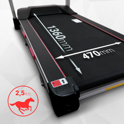 Двигатель мощностью 2,5 л.с. и оптимальный размер бегового полотна 136 х 47 см. обеспечивают комфортные кардиотренировки для спортсменов любого роста и весом до 150 кг.