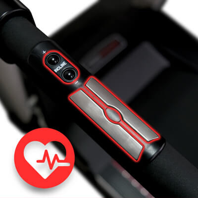 Для мониторинга состояния сердца, в поручни дорожки встроены датчики пульса, а также кнопки быстрого изменения скорости и угла наклона.