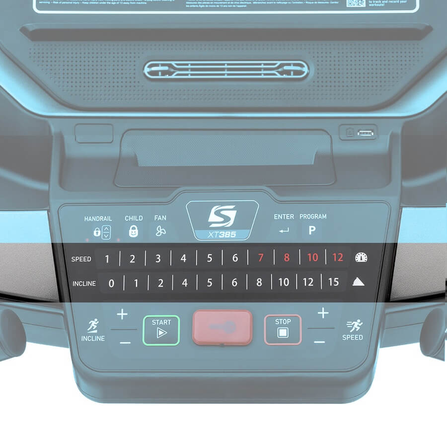 Съемный поворотный держатель для планшета позволяет установить телефон или планшет в поле зрения во время занятий фитнесом, не скрывая данные о тренировках на консоли. По завершении тренировки XT385 легко складывается при помощи встроенного механизма подъема. Транспортировочные ролики значительно упрощают перемещение и хранение беговой дорожки.
