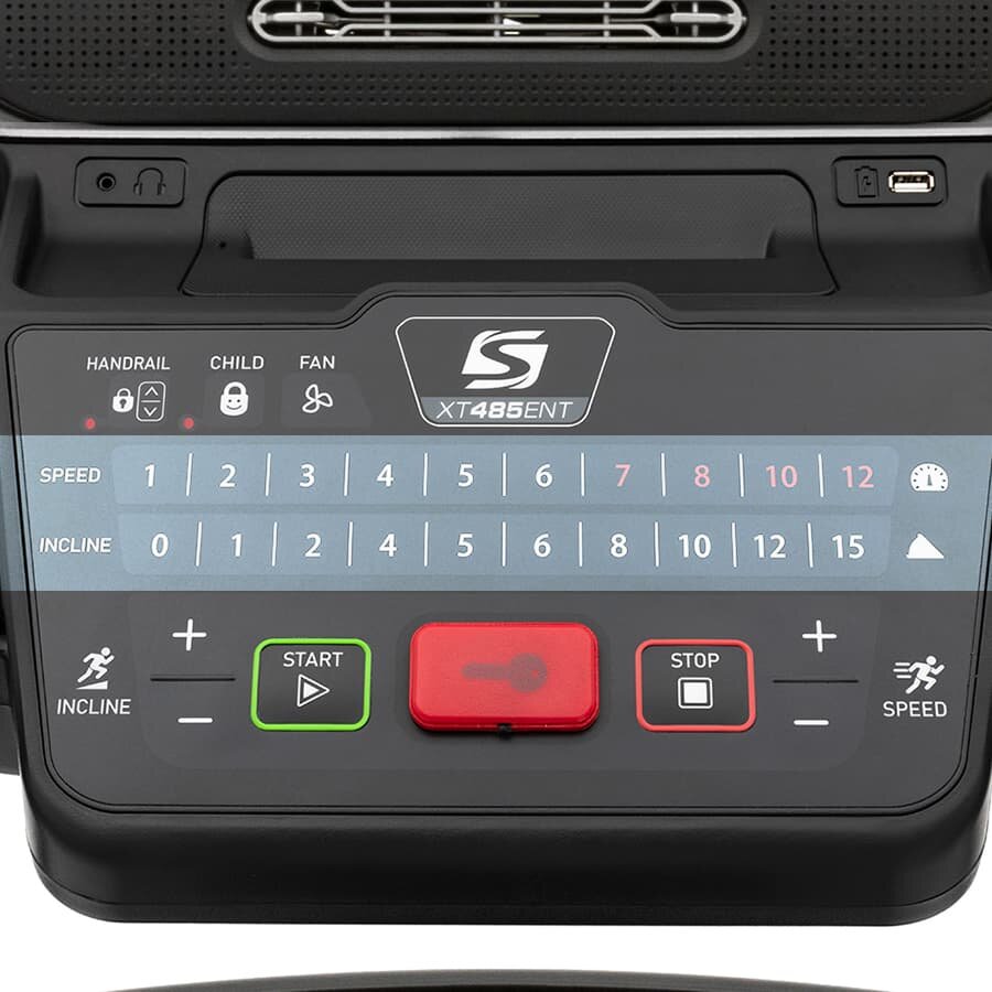 Полный набор прямых кнопок регулировки скорости и угла наклона отлично подходит для интервальных тренировок и быстрых изменений на ходу.