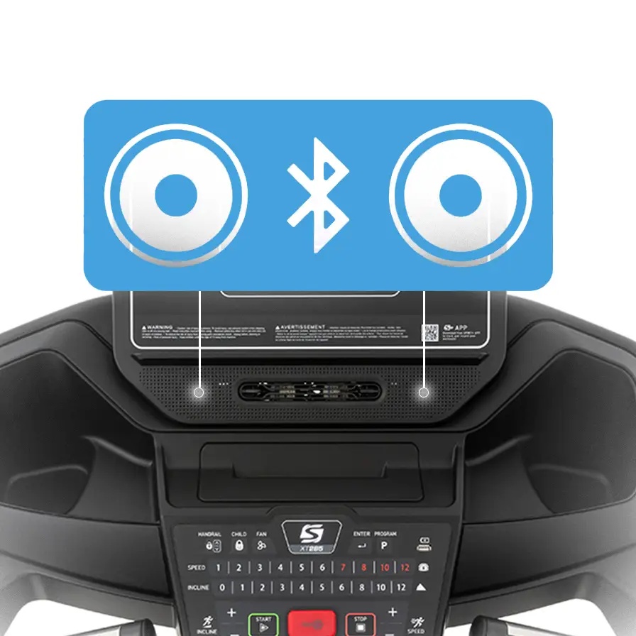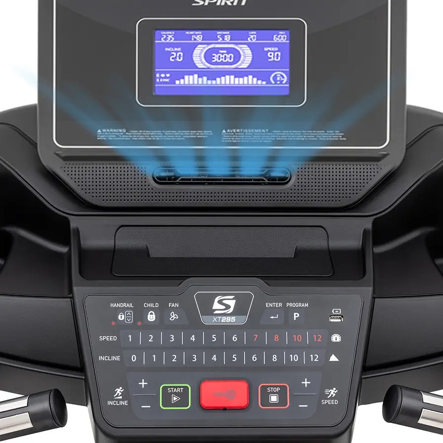 SPIRIT XT285 имеет схожие характеристики со SPIRIT XT185. Отличительными особенностями являются: поддержка работы с кардиопоясом, наличие пульсозависимых программ, возможность прослушивания любимой музыки через встроенные bluetooth динамики, дека толщиной 25 мм (Phenolic deck), что значительно увеличивает допустимый максимальный вес пользователя. Эта модель является очень привлекательной для человека, требования которого заключаются в тренировках средней интенсивности.