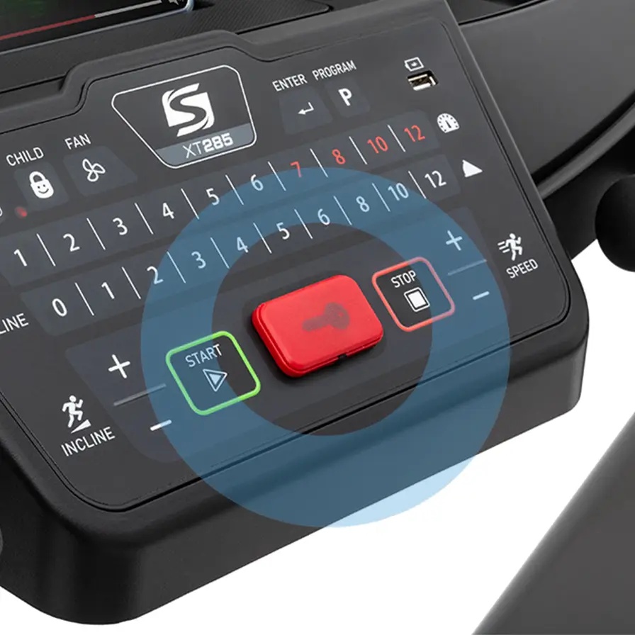 - Магнитный ключ для аварийной остановки двигателя дорожки в случае падения;