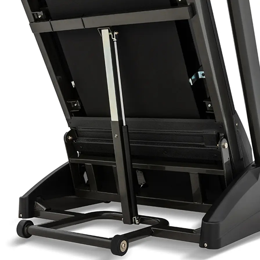 Позволяет плавно складывать и раскладывать дорожку, исключая быстрое падение беговой поверхности.