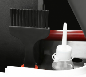 Масса вещей скрывается в различных, невидимых глазу мелочах. Кожух моторного отсека закреплен не несколькими саморезами или винтами как это происходит обычно, а двумя клипсами, которые можно открыть монетой за пару секунд. Это сильно облегчает процесс доступа к моторному отсеку для его очистки. Даже если у вас нет пылесоса - в специальной нише предусмотрена кисточка. Здесь же находится масленка с силиконом для смазывания полотна. Само смазывание происходит полуавтоматически, никаких специальных процедур с проливом деки силиконом не требуется. Единственно, что необходимо - периодически добавлять силикон в систему полуавтоматического смазывания.