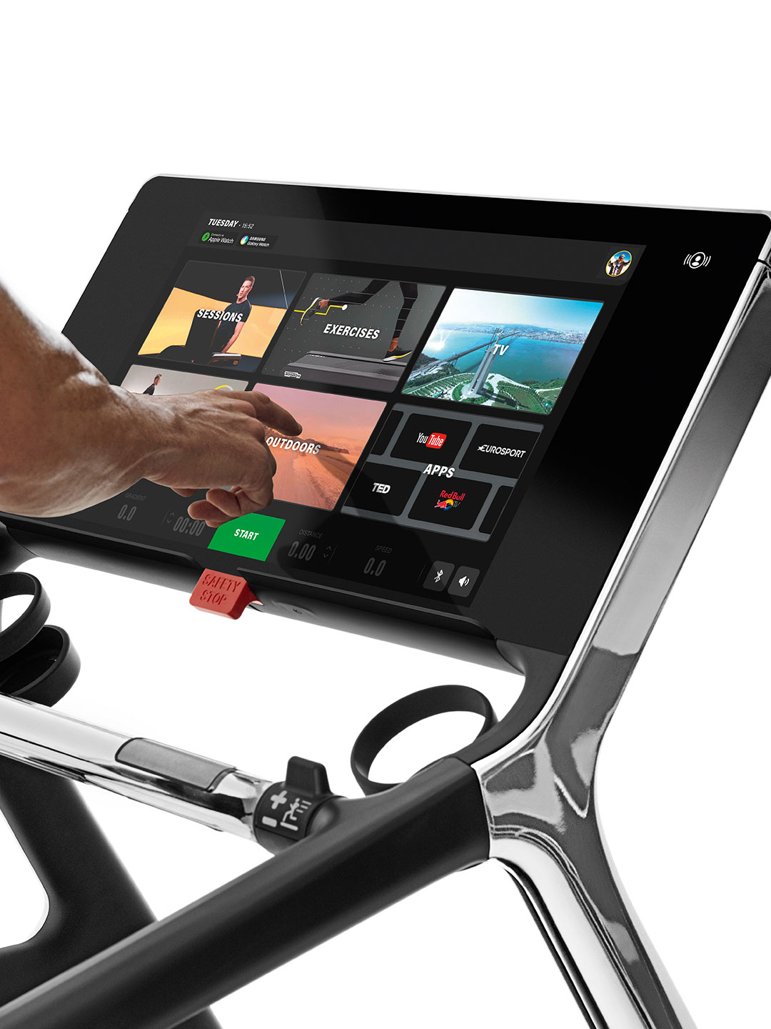 Смотрите любимые сериалы или ТВ-программы на HD-экране, открывайте плейлисты YouTube или просматривайте популярные веб-сайты — делайте каждую тренировку увлекательной и мотивирующей.