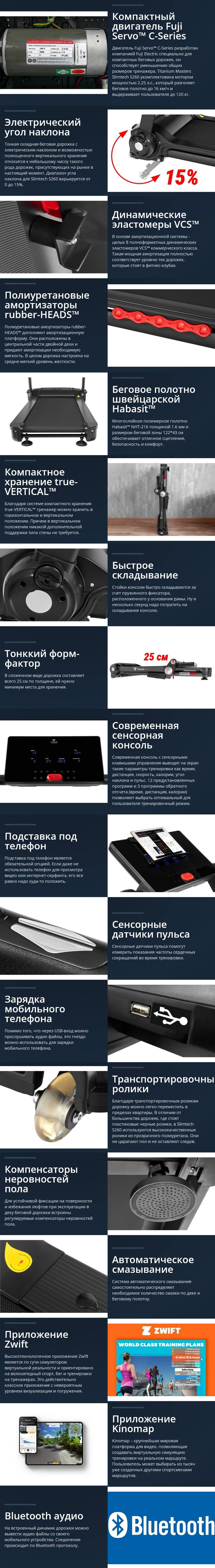 Основными, но не единственными преимуществами дорожки является наличие электрического угла наклона и ультракомпактного складывания. Толщина тренажера в сложенном виде составляет всего 25 см. При этом дорожку можно хранить как горизонтально, так и вертикально. В вертикальном положении дорожка стоит самостоятельно, ее нет необходимости прислонять на какую-либо опору. Автоматически регулируемый угол наклона от 0 до 15% позволяет значительно более эффективно использовать встроенные программы и сделать акцент либо на развитие скоростных качеств, либо на выносливость и тренировку кардио.