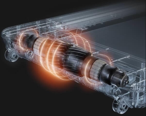 Сложная система амортизации рассредоточена по всей площади бегового полотна. Эффект, который она создаёт, снижает нагрузку на ноги, стопы и позвоночник. А ещё глушит шум ударов о беговое полотно — на 42,7%.