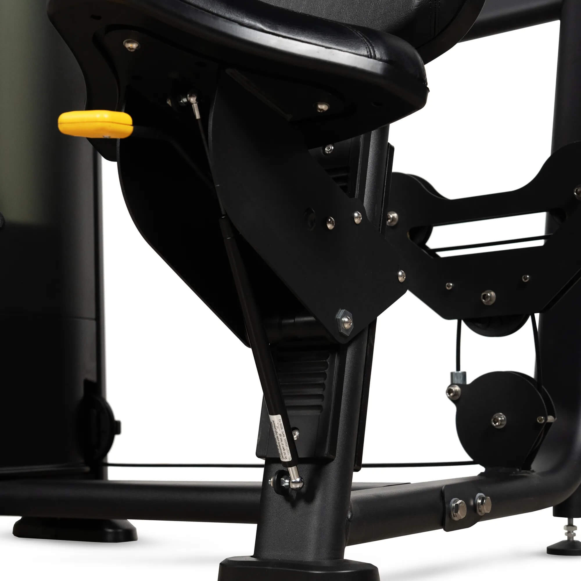 Дизайн BRONZE GYM Blanc 30 является ключевым аспектом, который делает его современным и привлекательным в тренировочных помещениях. Черная основа, сочетаемая с желтыми акцентами на регулировке веса стека и сиденьи, придает ему уникальный стиль и элегантность. Это сочетание цветов подчеркивает надежность тренажера, что делает его подходящим для различных сред тренировок. Дизайн привлекает внимание и создает яркое впечатление, что способствует привлечению новых клиентов. Профессиональные дизайнеры активно работали над внешним видом оборудования, чтобы достичь гармоничного сочетания функциональности и эстетики в тренировочном пространстве.