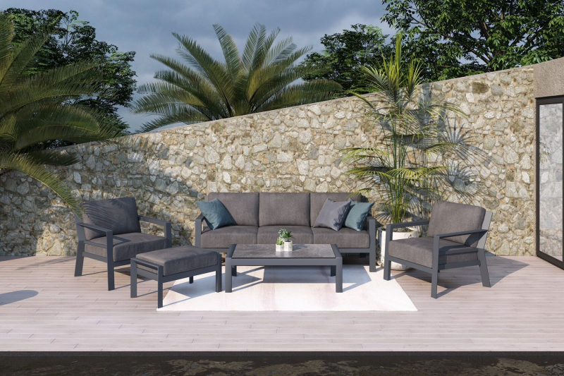 Важным преимуществом трехместного дивана является оптимальный угол наклона спинки, он позволяет максимально расслабиться и насладиться отдыхом на свежем воздухе, чувствуя себя комфортно и уютно. Устойчивый к атмосферным воздействиям материал подушек, позволяет использовать изделия на открытом воздухе.