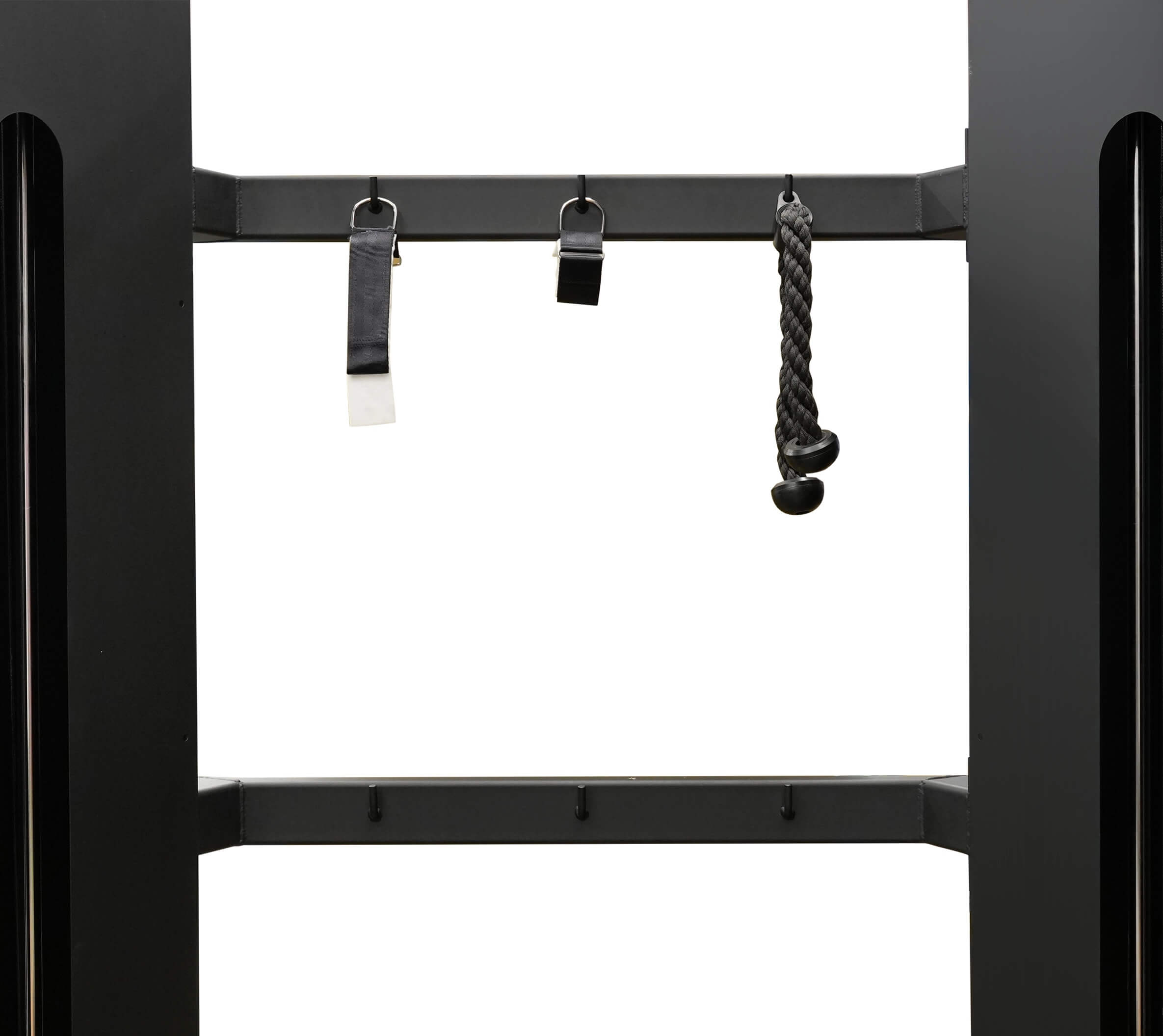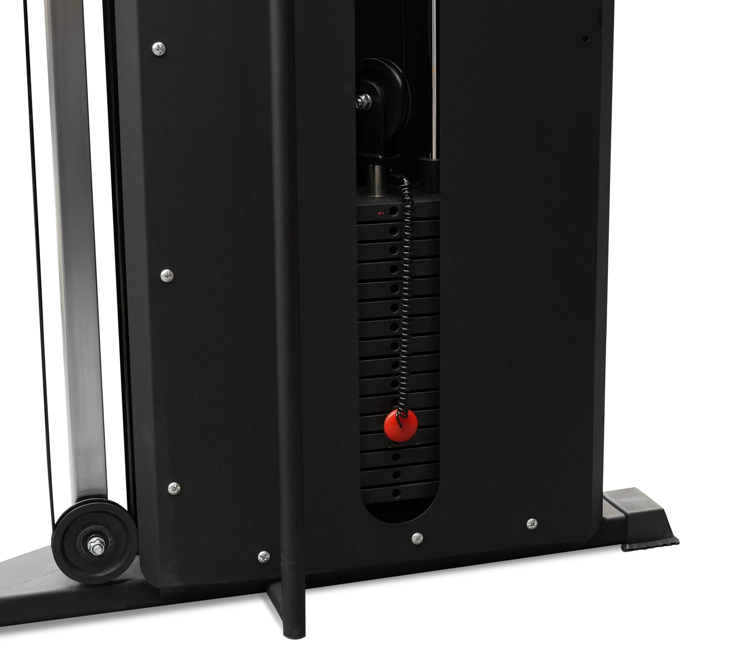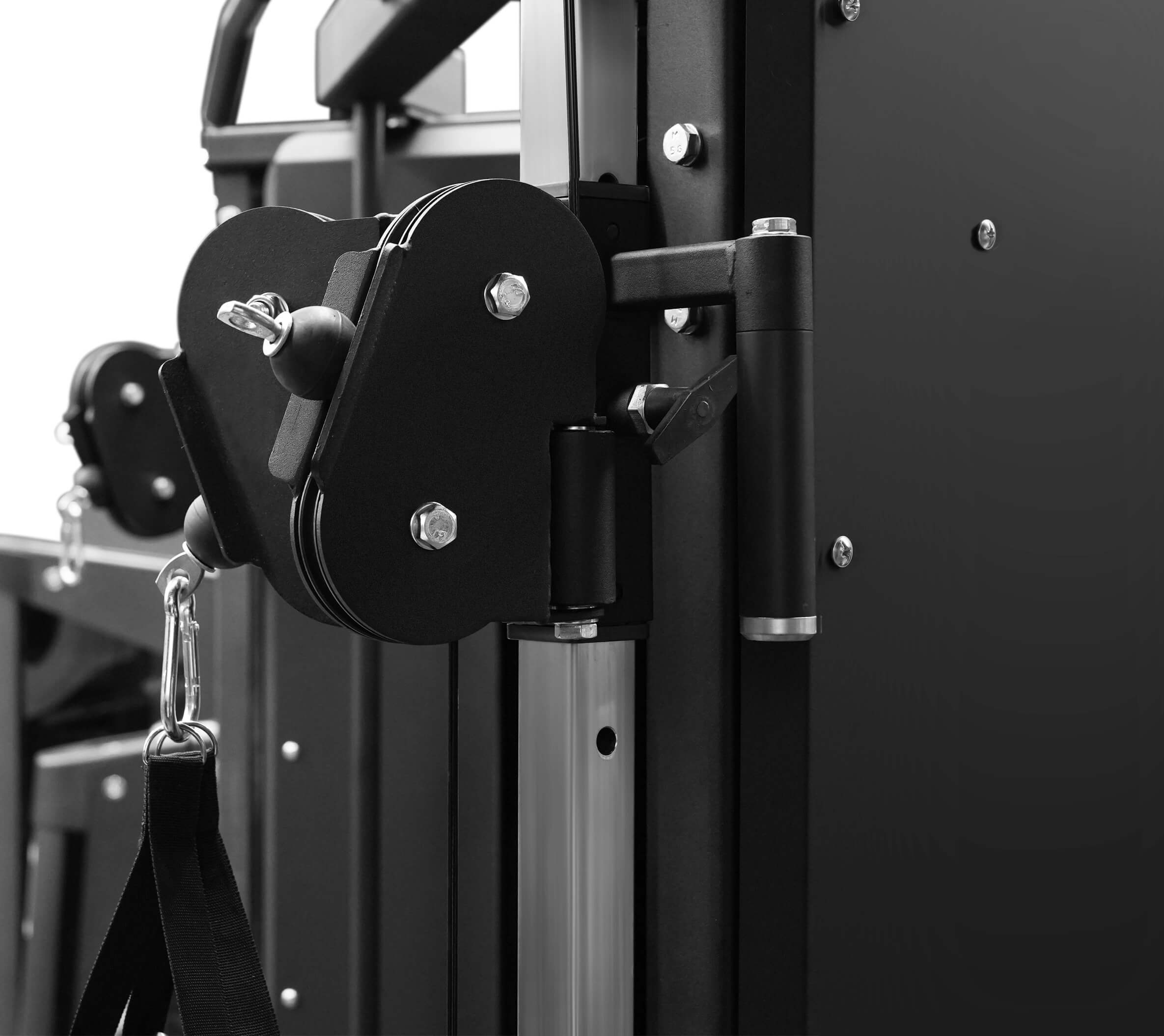 Система протяжки троса запатентована и позволяет легко менять нагрузку во время тренировок. Вес стека составляет 2*80 кг, что позволяет настроить тренировку под свои потребности. Тренажер оснащен многопозиционным турником, который позволяет выполнять разнообразные упражнения для развития мышц рук, бицепса, а также для работы с тягами и жимами. В комплекте поставляются различные рукоятки, которые позволят вам варьировать нагрузку и улучшить результаты тренировок.