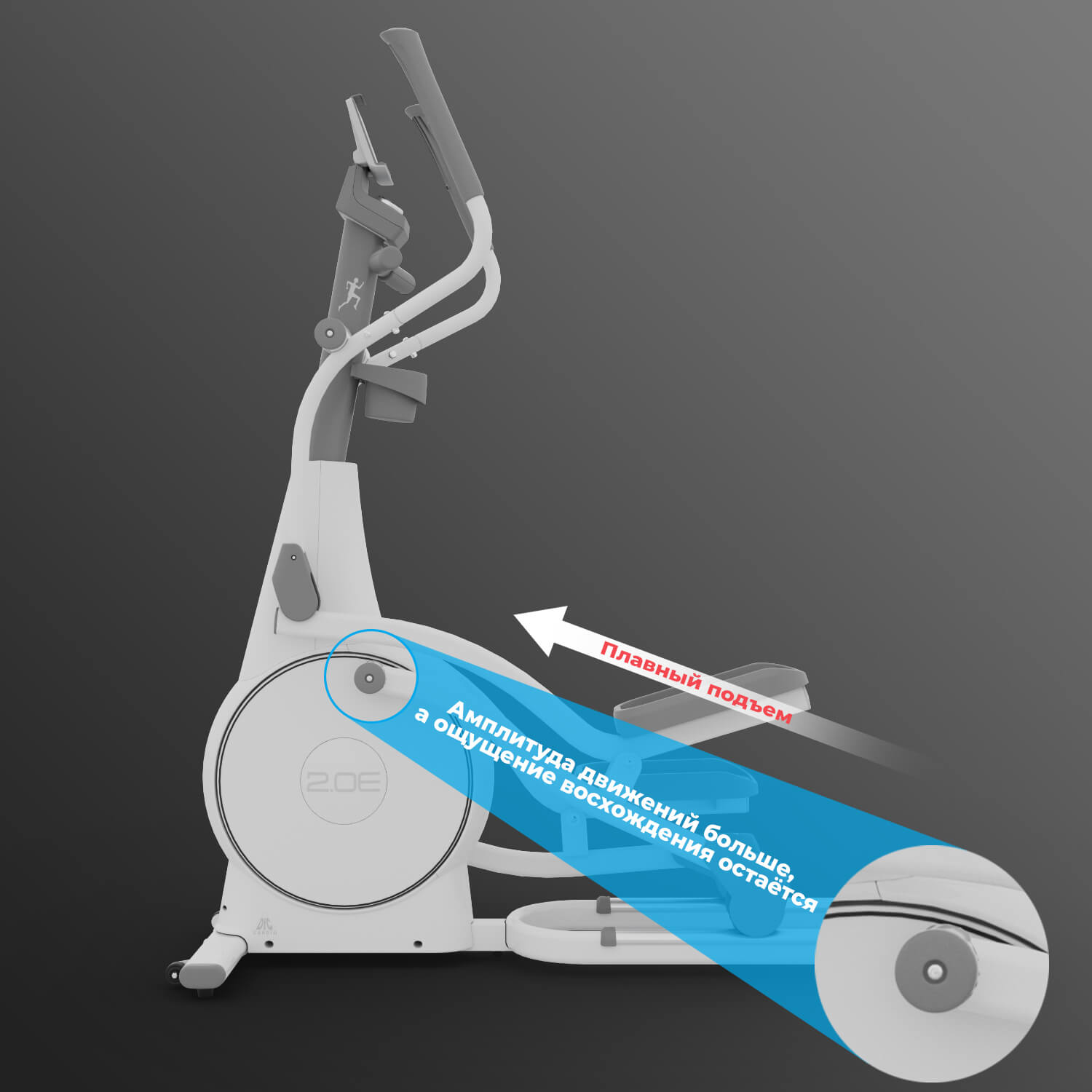 Модель E4200 с повышенной амплитудой движений, благодаря чему шаг более плавный, но нагрузка на ноги такая же, как при восхождении в гору.