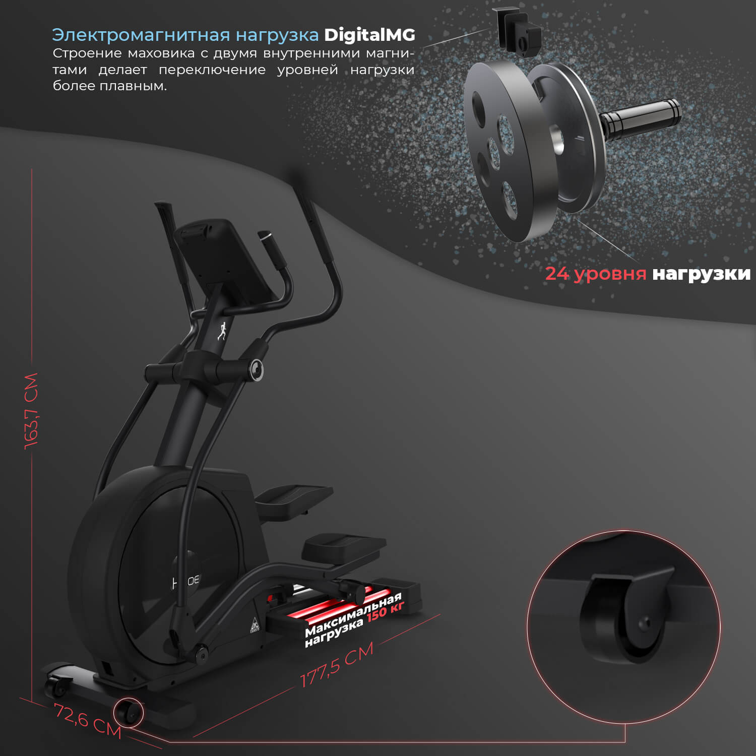 Магнитная система нагрузки с электроприводом имеет 24 уровня, которые переключаются с панели управления. Маховик с инерционным весом 16 килограмм гарантирует плавное переключение, которое не ощущается в процессе тренировки.