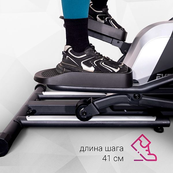 Эргономичный дизайн. Длина шага 41 см и небольшой Q-фактор позволяют тренироваться с правильной биомеханикой. Тренажер имитирует естественные движения, уменьшая нагрузку на суставы и позвоночник.