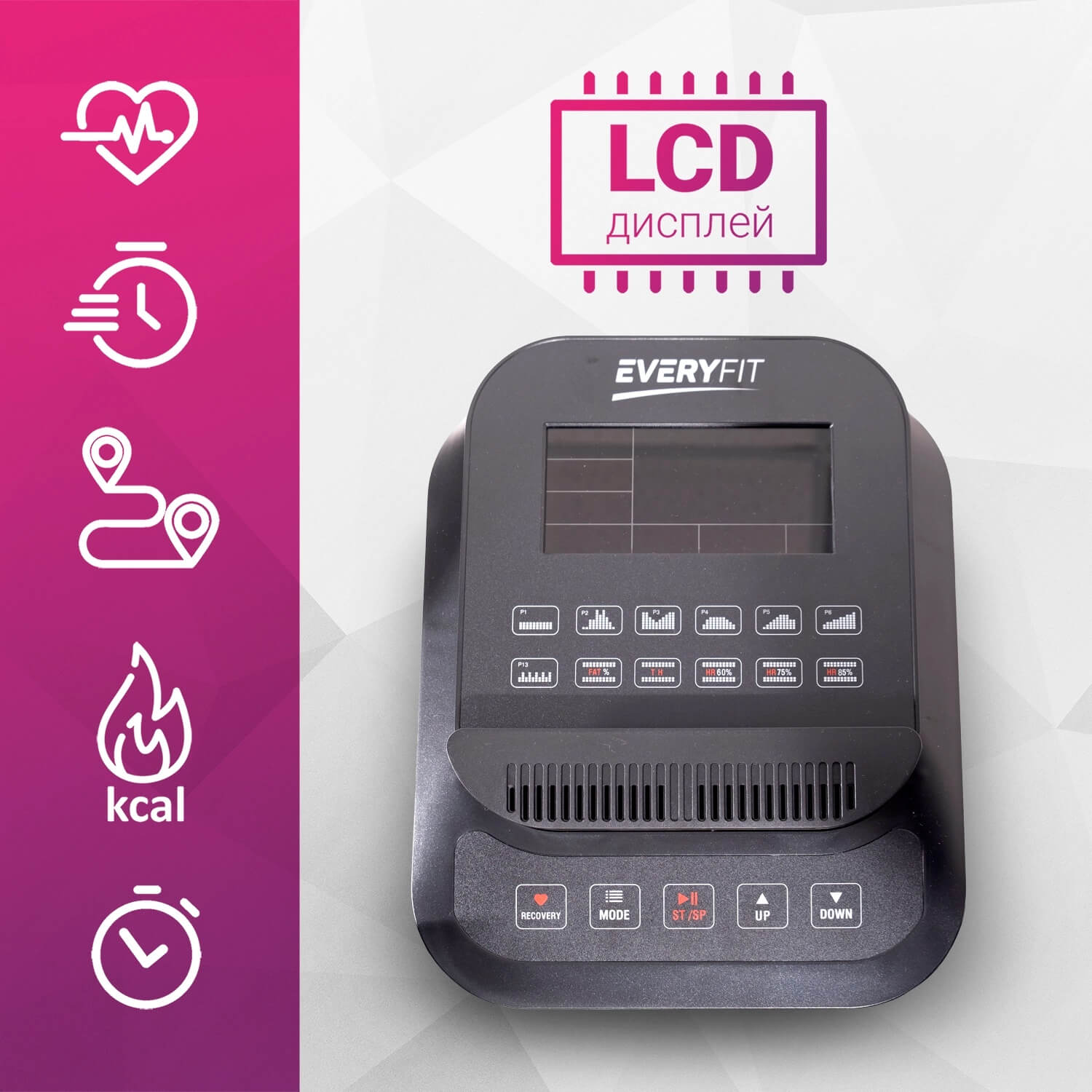 Следите за ходом тренировки с помощью простого в управлении LCD-дисплея, на котором отображаются все ключевые показатели.