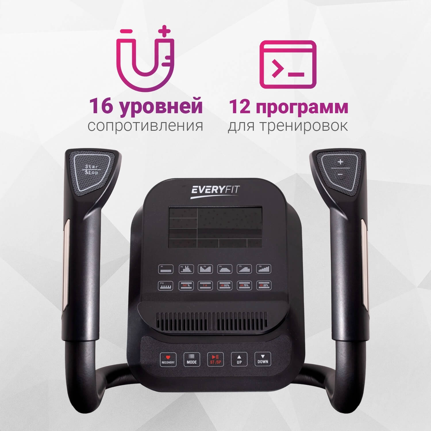 16 уровней сопротивления и 12 тренировочных программ позволяют выбрать интенсивность тренировки в зависимости от ваших целей и задач.