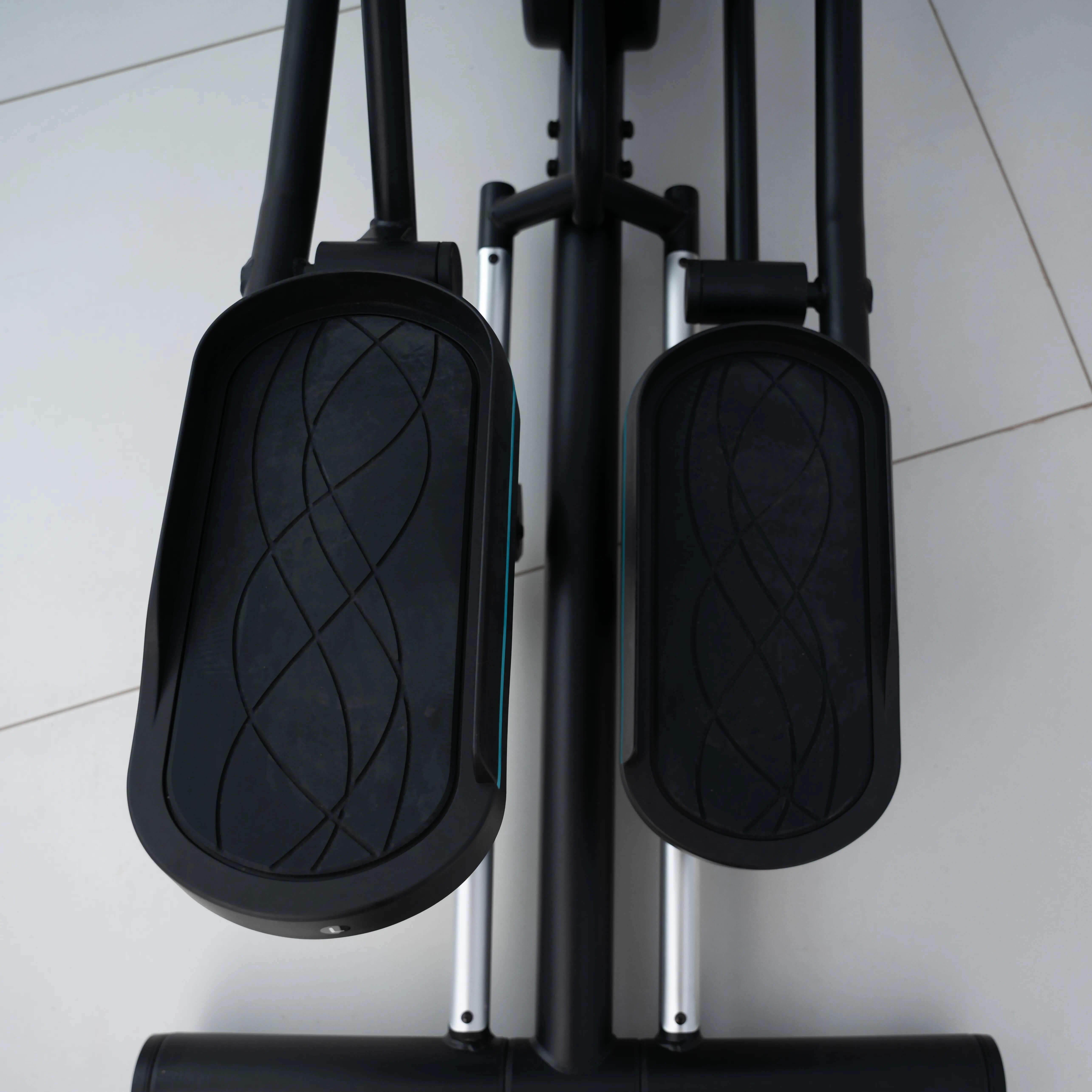 Педали тренажера имеют трехкомпонентный дисковый педальный узел с увеличенным радиусом, обеспечивая комфорт и безопасность во время тренировки. Антискользящие педали увеличенного размера и расстояние между педалями в 6 см обеспечивают естественное и удобное положение ног во время тренировки.