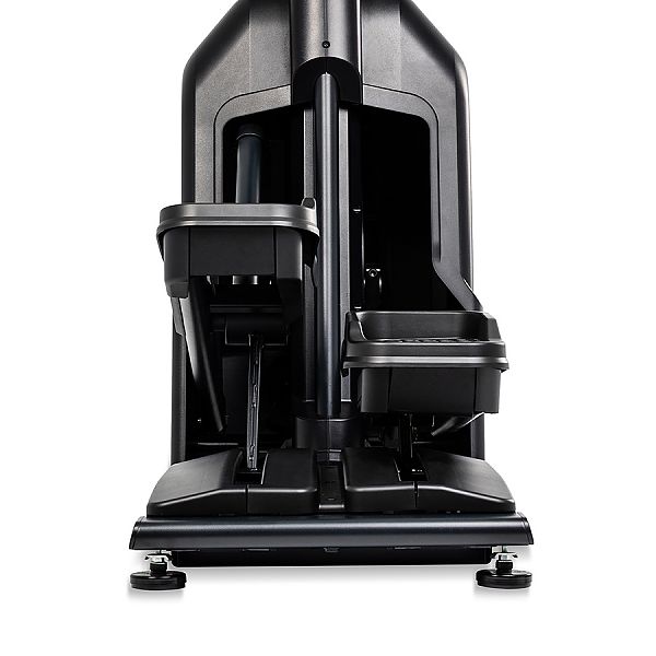 Конструкция предусматривает крепкую и стабильную систему перемещения роликов с вогнутыми колесами и сдвоенными алюминиевыми направляющими. Приводная система с маховиком массой 14 кг и передаточным числом 12:1 между педалью и маховиком гарантирует сбалансированное и плавное движение.
