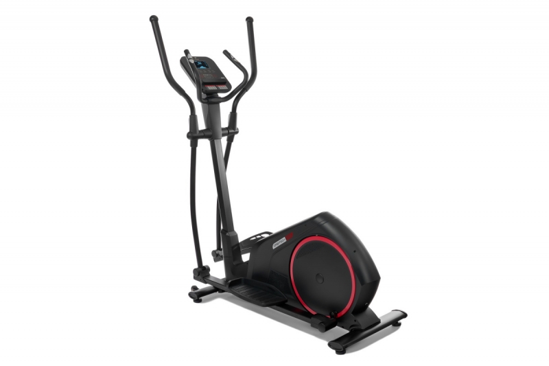 Тренировочный компьютер представлен цветным LCD-дисплеем диагональю 5,5 дюймов (12,7 см). На экран выводятся все основные параметры тренировки - время, дистанция, скорость, калории, обороты в мин., уровни нагрузки, пульс и программные профили. Измерение пульса происходит путем удержания ладоней на сенсорных датчиках пульса, расположенных на поручнях. В программный пакет входят 10 тренировочных профилей, ориентированных на различные пользовательские задачи – от похудания до развития выносливости. При желании можно создать собственную программу, для этого предусмотрено 5 дополнительных программных слотов. Для контроля пульса существуют 4 пульсозависимых режима с предустановленными значениями 55/75/95% и 100% от целевого пульса. Ватт-программа позволяет зафиксировать необходимый уровень нагрузки - он останется постоянным вне зависимости от скорости вращения педалей. По завершении тренировки функция Recovery оценит способность сердечно-сосудистой системы к восстановлению. К числу дополнительных характеристик эллипсоида относятся такие опции как транспортировочные ролики и компенсаторы неровностей пола. Переместить изделие из одного места в другое не составит большого труда даже для хрупкой девушки, а компенсаторы позволят отрегулировать положение ножек на неровной поверхности.