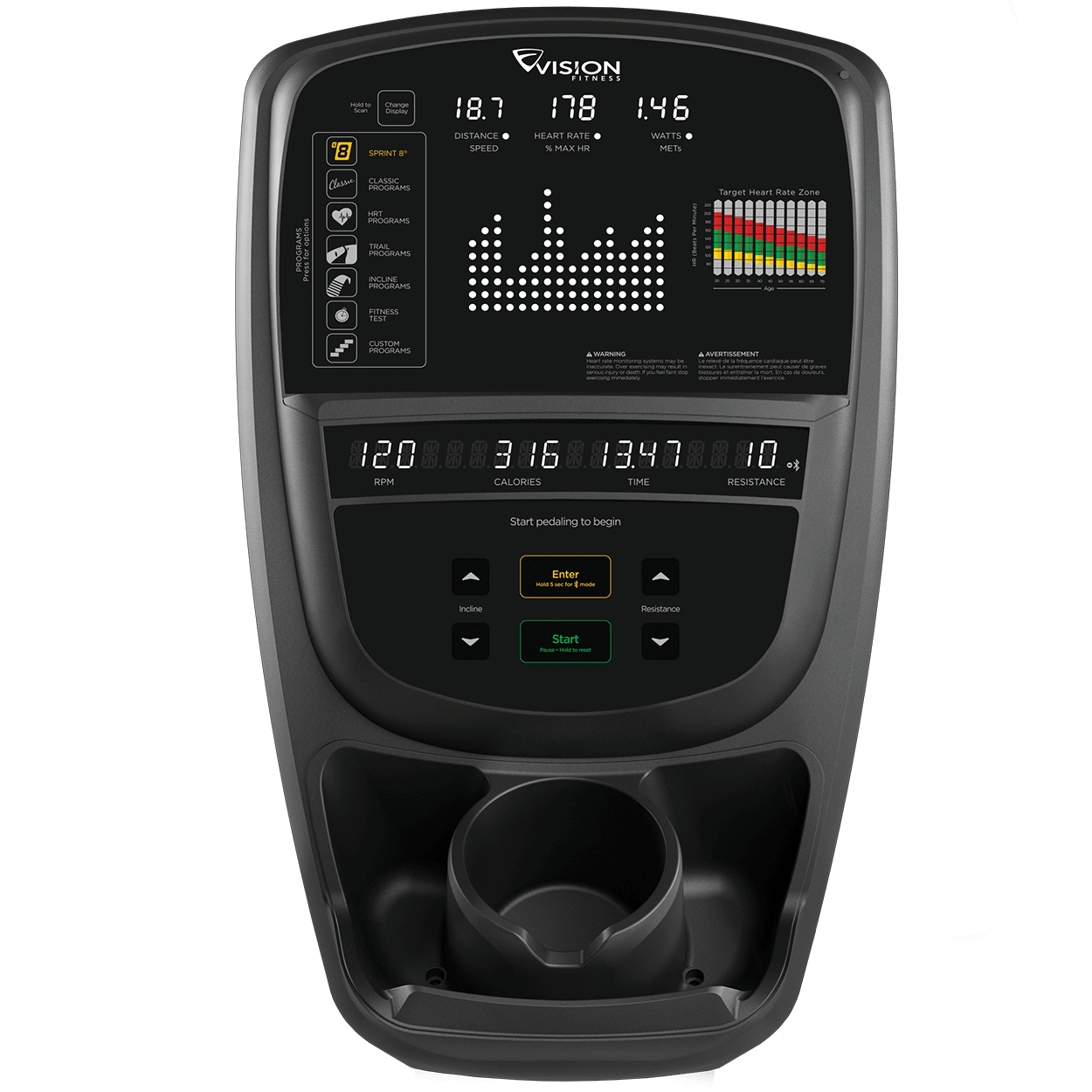 - Встроенные программы Ручной режим, SPRINT 8, заданная ЧСС, интервальный режим, сжигание жира, потеря веса с заданной HRT, интервальный режим с заданной HRT, подъем с заданной HRT, трасса 2K, трасса 5K, трасса 8K, тренировка ягодиц (Glute Burn), покорение вершин (Summit Hike), поход в горы (Mountain Trek), подъем по лестнице (Stair Climb), фитнес-тест, произвольный выбор, пользовательский режим