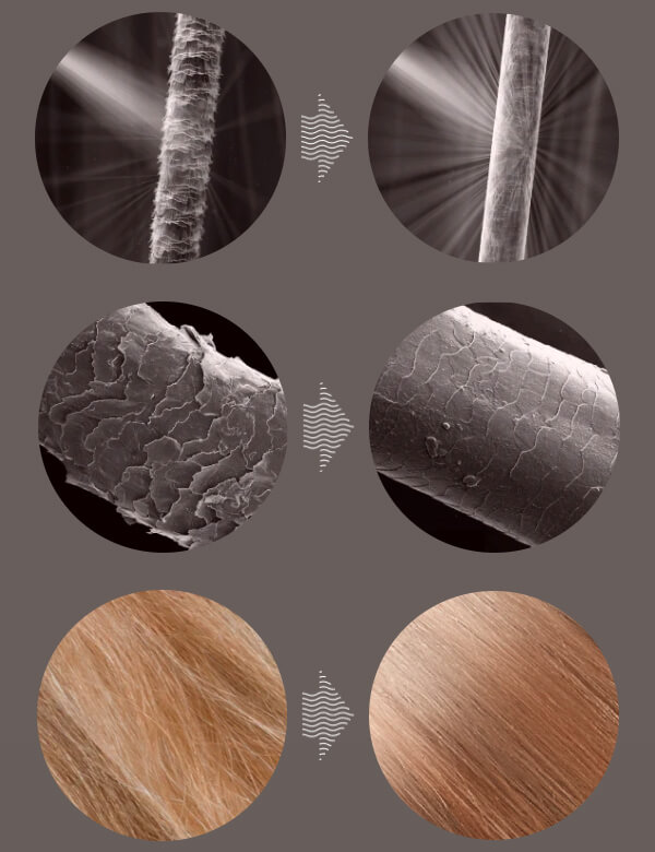 Защищает поверхность волосков от пыли и уменьшает ломкость прядей, сохраняя их естественную увлажненность.