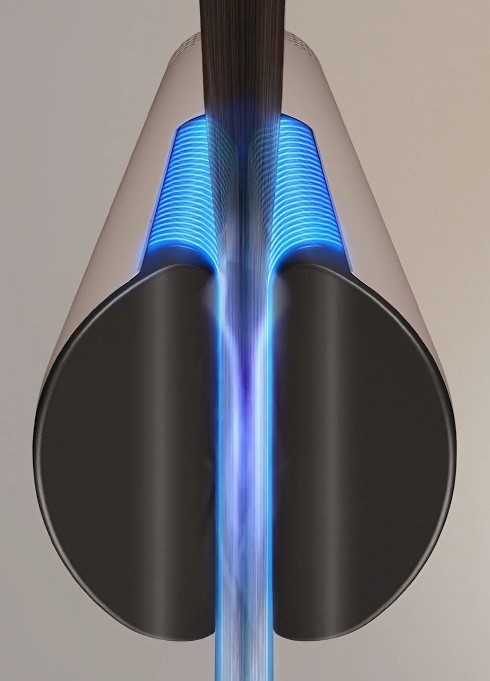 Поток воздуха, нагреваясь, ускоряет испарение влаги и одновременно разглаживает кутикулу за счет оптимального натяжения прядей.