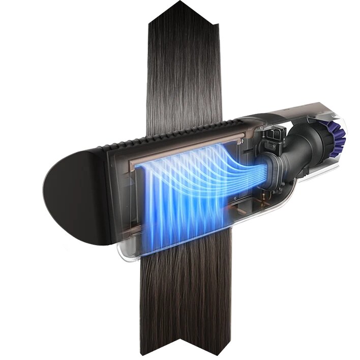 В отличие от обычных выпрямителей, где волосы напрямую контактируют с горячими пластинами, технология использует мощный воздушный поток. Он мягко выравнивает пряди по всей длине – от корней до кончиков.