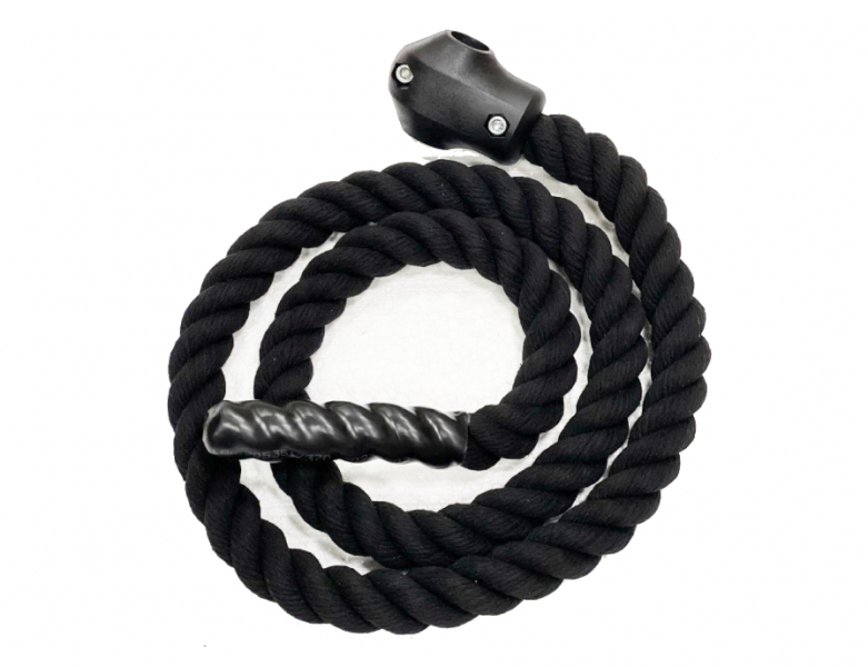 Прочный, надежный, эргономичный. Всё это наш новый канат из 100% хлопка FitnessRope. Он имеет надежное крепление из пластика, благодаря которому легко устанавливается к любой перекладине. Противоположный конец имеет полиуретановую оплетку, препятствующую распушению нитей.