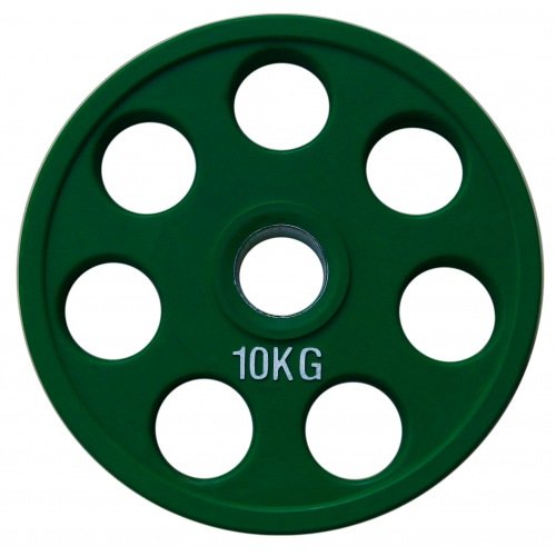 Модель под названием RCP19-10 представляет собой цветной профессиональный олимпийский диск с обрезиненным покрытием. Цвет диска – зеленый, вес 10 кг, внутренний диаметр – 51 мм. Его используют в комплекте с профессиональными гирями и штангами.