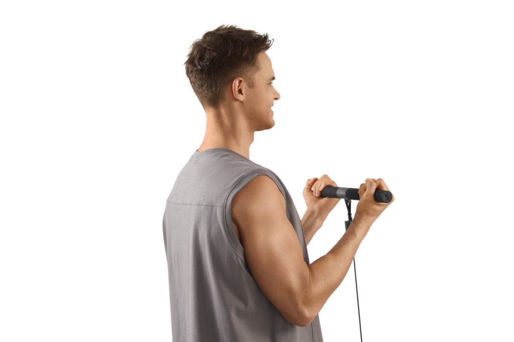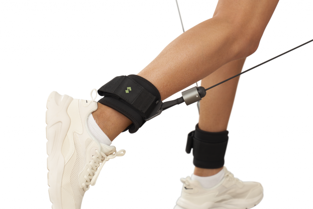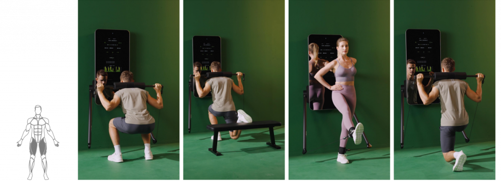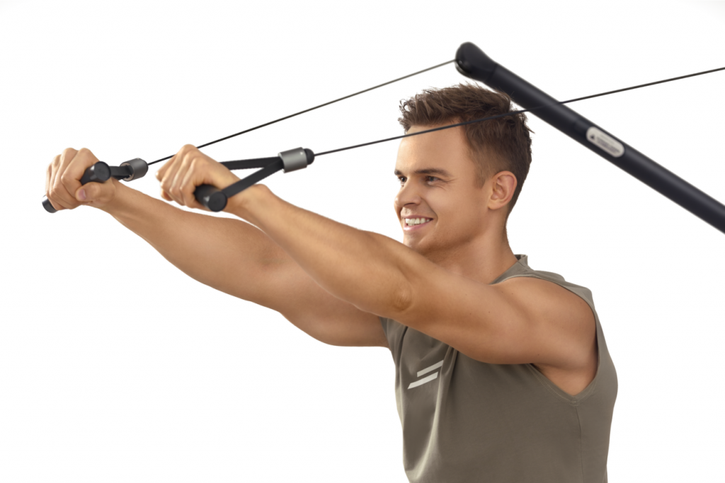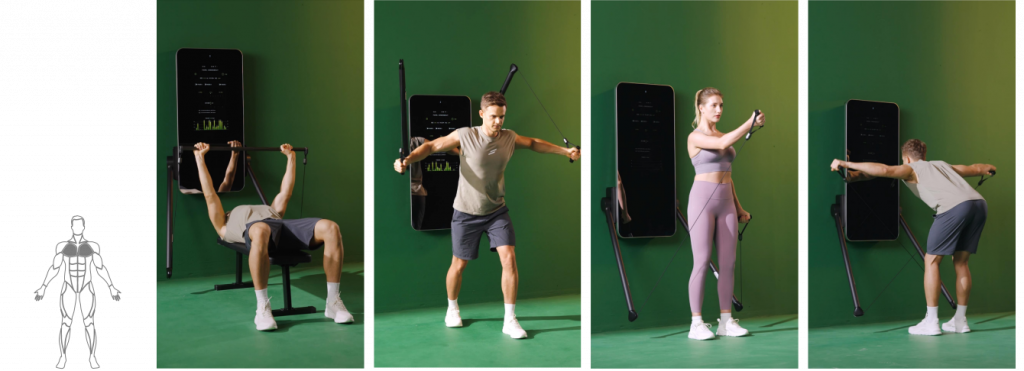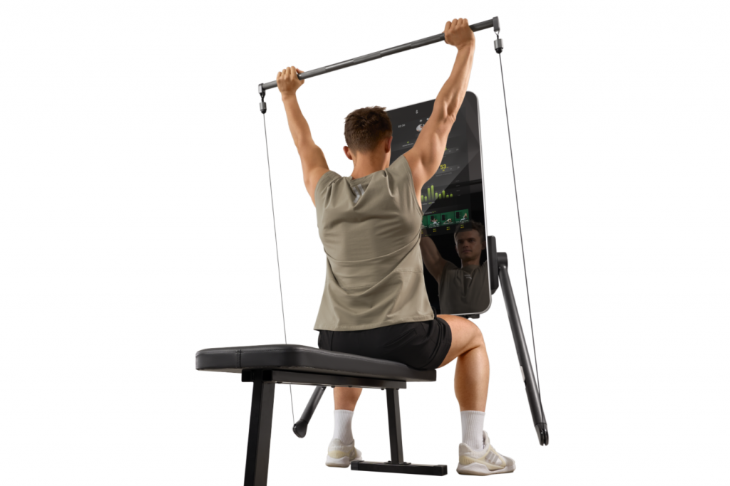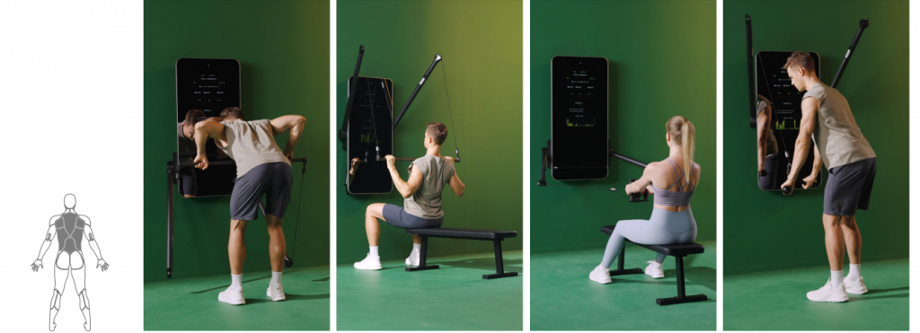 Система обеспечивает плавное сопротивление от 4 до 100 кг через тросовый механизм с помощью моментных двигателей — больше никаких тяжелых физических блинов и дисков.