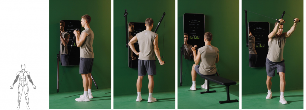 Интуитивно понятный интерфейс позволяет одним касанием пальца настраивать вес, выбирать упражнения и мгновенно переключаться между режимами тренировки.