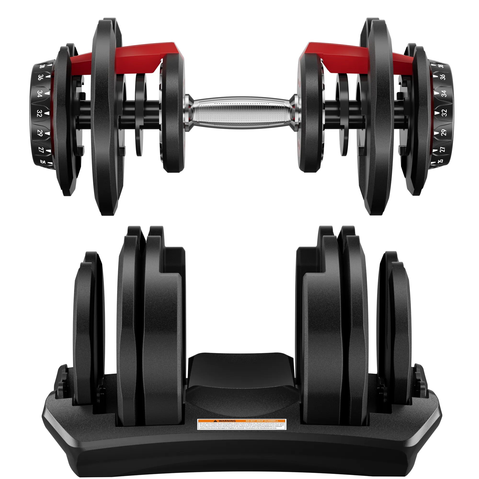 Гантель оснащена рукояткой диаметром 35,8 мм, что обеспечивает надежный захват и комфорт во время тренировок. В комплект входит десять дисков и одна ручка для гантелей, что позволяет легко менять уровень нагрузки. Поставляемая подставка из ABS и PP пластика обеспечивает удобное хранение и экономит место, что делает использование гантелей еще более практичным.