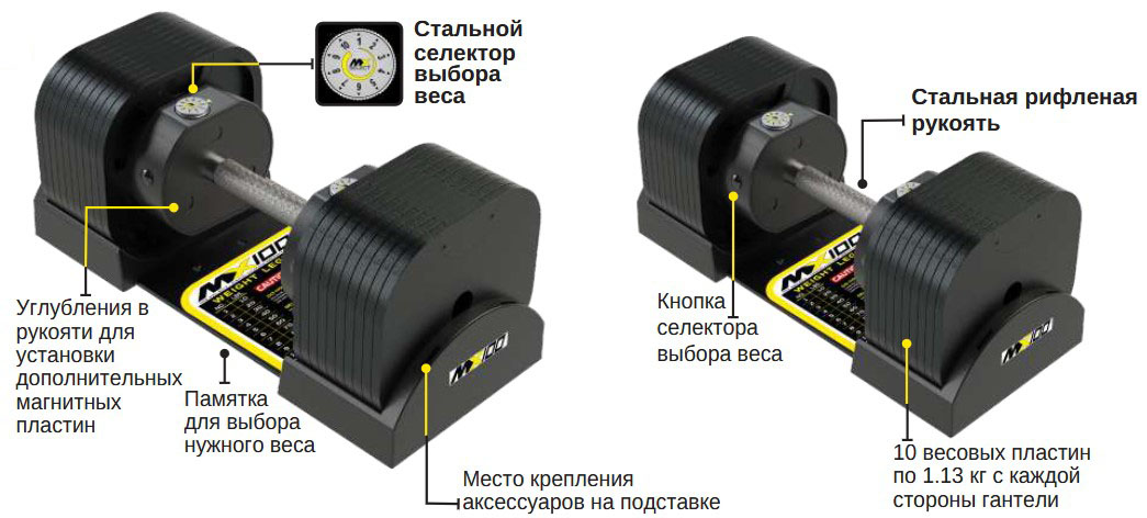 Гантели наборные MX SELECT Evo MX100 (рифленая стальная рукоять)