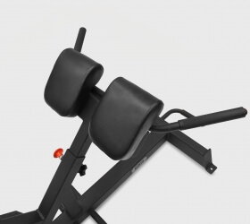 Профессиональные скамьи от немецкого бренда BRONZE GYM — это отличное решение для любых фитнес клубов, которое добавит универсальности в каждую тренировку. BRONZE GYM AL-317 - это гиперэкстензия коммерческого класса. Модель предназначена для выполнения упражнений на мышцы спины, пресс, заднюю поверхность бедра, ягодичные мышцы. Каркас оборудования выполнен из толстостенного профиля 50*100 мм прямоугольного сечения толщиной 3 мм. На BR-1010 установлена широкая и мягкая парта с полиуретановым наполнителем и обивкой из искусственной кожи, а также валики. Для настройки гиперэкстензии под рост пользователя установлена возможность регулировки парты по длине. Платформа для ног покрыта антискользящей рифленой поверхностью. Для удобства перемещения на тренажере предусмотрена специальная рукоятка и транспортировочные ролики.