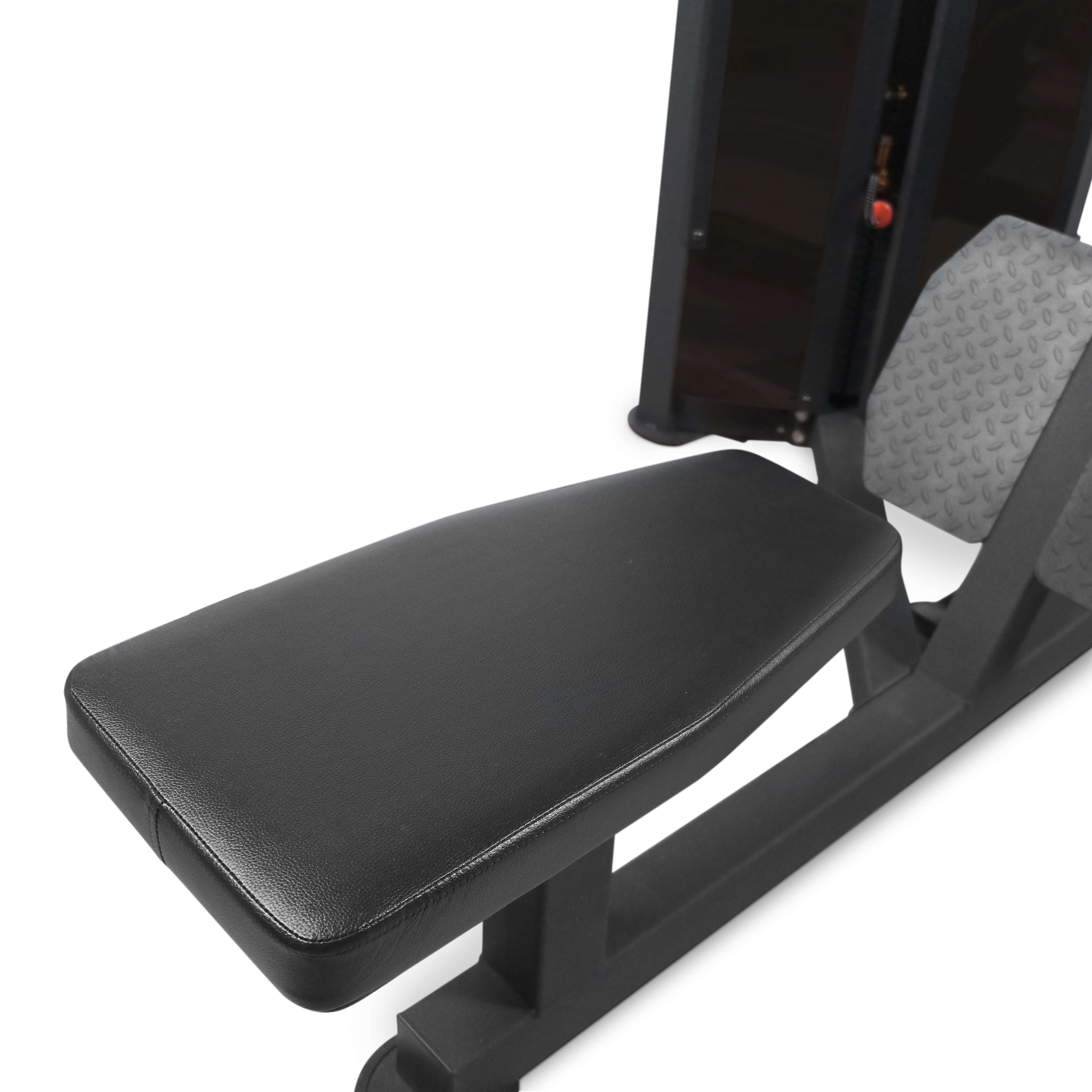 Модель 2024 года отличается стильным черным цветом и привлекательным дизайном. Изготовленный из прочного пластика, тренажер обеспечивает надежность и долговечность в использовании. Хромированные направляющие, комфортное сиденье из экокожи с возможностью регулировки положения, 140-килограммовый грузоблок и максимальная весовая нагрузка до 140 кг делают тренировки максимально эффективными и безопасными.