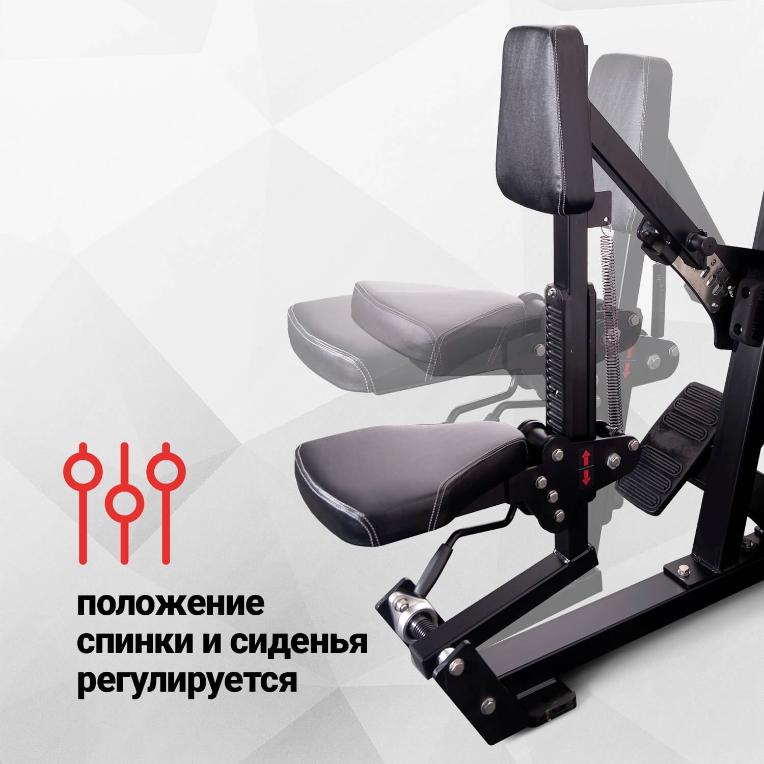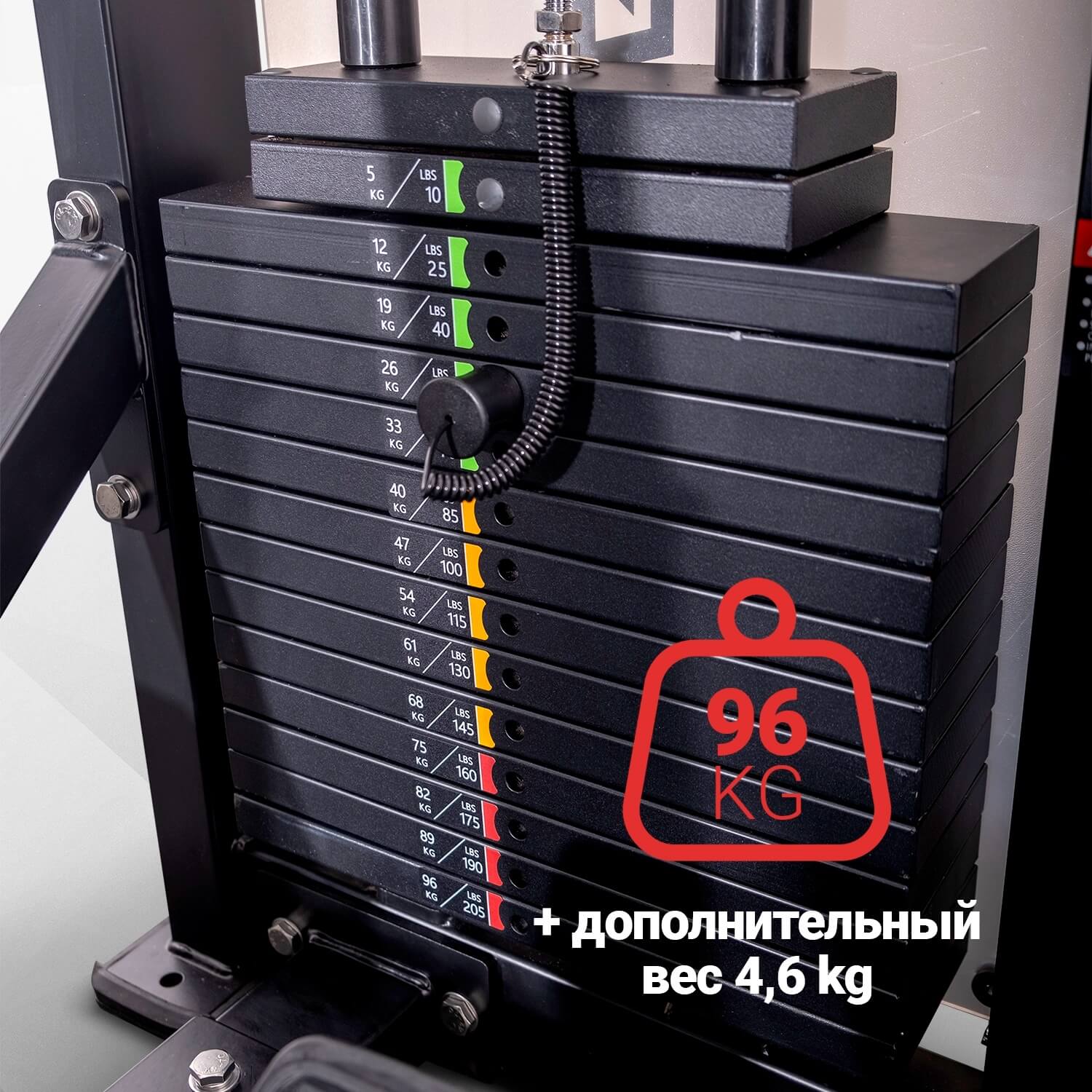 Правильная биомеханика позволяет снять нагрузку с позвоночника. Весовой стек - 96 кг. Есть также дополнительный вес для постепенного увеличения нагрузки — 2 стека по 2 килограмма 300 граммов.