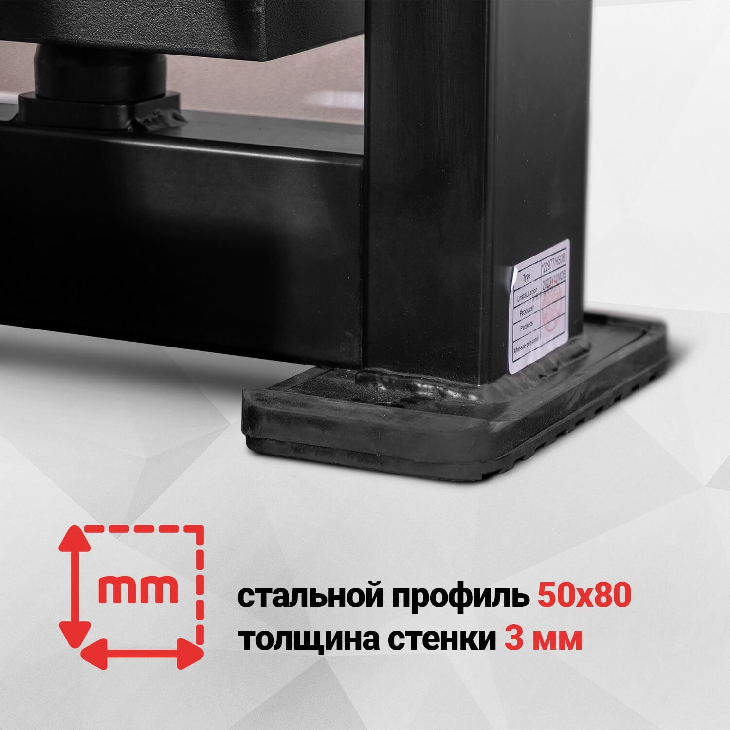 Тренажер имеет прочную сварную раму, окрашенную порошковой краской. Тренажер изготовлен из стального профиля 50x80, толщина стенки 3 мм.