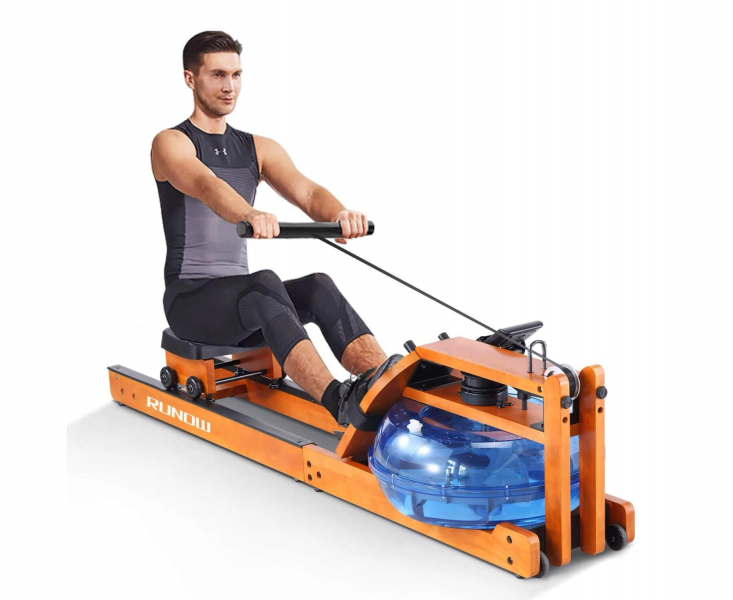 Гребной тренажер DFC Runow 6203 выполнен в цвете Оранжевый дуб и предназначен для пользователей весом до 125 килограмм. Тренажер компактен и может быть установлен вертикально у стены.