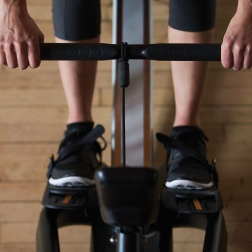 Длинная усиленная рукоятка имеет покрытие, которое раз за разом обеспечивает комфортную работу на тренажере гребцам любого роста и телосложения.