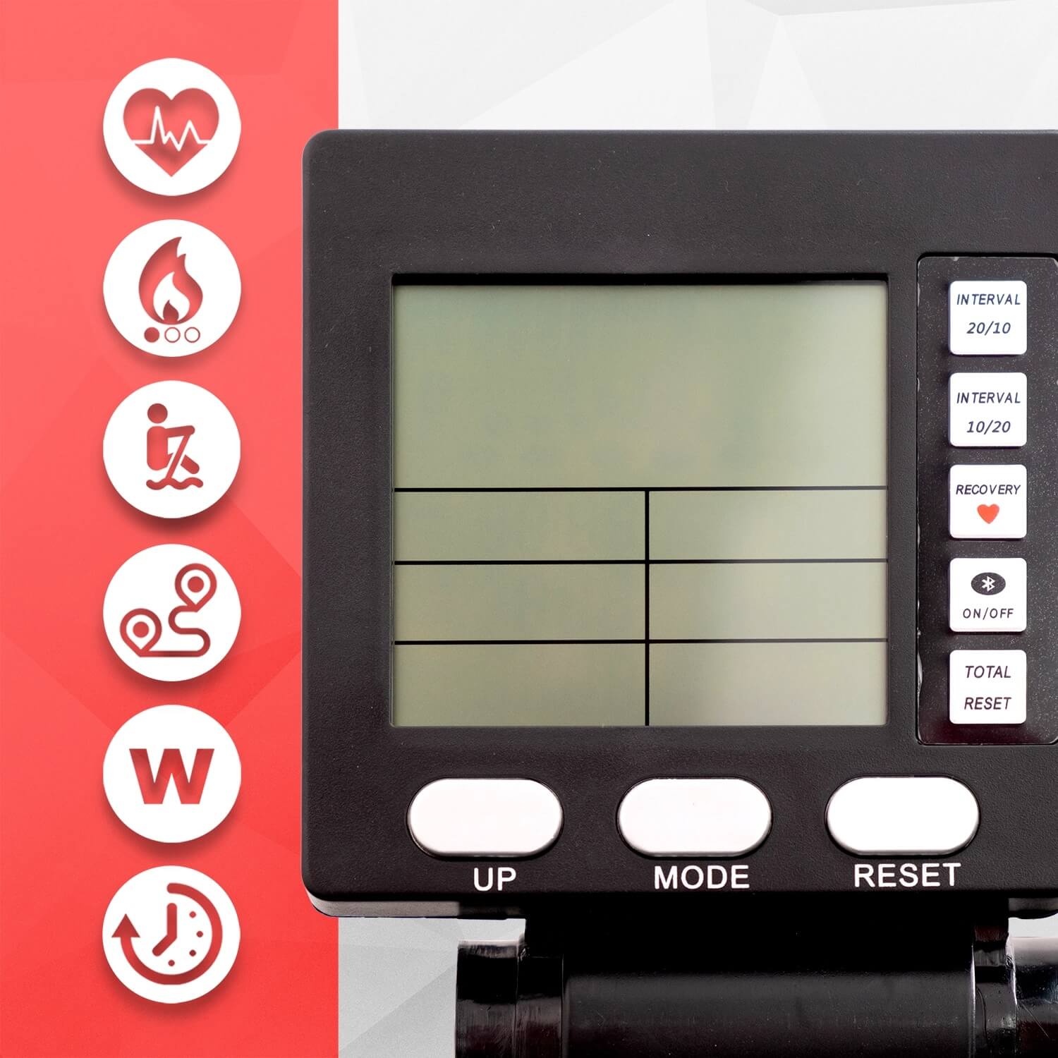 Монохромный дисплей отображает основыне показатели тренировки, кроме обычных - установлены интервальные программы.